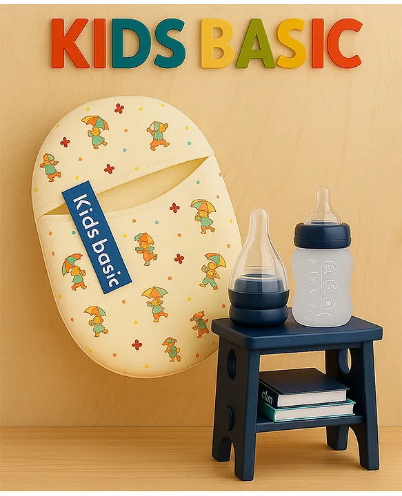 The KIDS BASIC Newborn Essential Combo is the perfect starter kit for your little one, combining a cozy muslin sleeping bag with a versatile 2-in-1 feeding bottle. The soft muslin sleeping bag in blue stripes provides a secure, womb-like swaddle that promotes bonding and peaceful sleep through its breathable, skin-friendly fabric. The innovative feeding bottle serves dual purposes - functioning as a traditional nipple bottle for milk and a convenient spoon feeder for semi-solid weaning foods. Made from 100% BPA-free materials, this combo ensures complete safety and comfort for your newborn. Whether it's naptime or feeding time, this essential set makes parenting easier with its practical, high-quality designs.