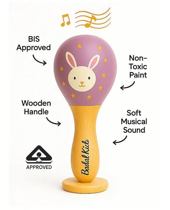• Developmental Wooden Rattle: A BIS Certified wooden rattle in green aids in stimulating auditory and motor skills.