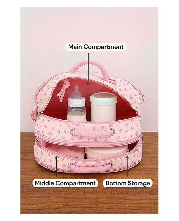 3-Zipper Compartments: Main, middle, and bottom sections for organized storage of diapers, clothes, and essentials.